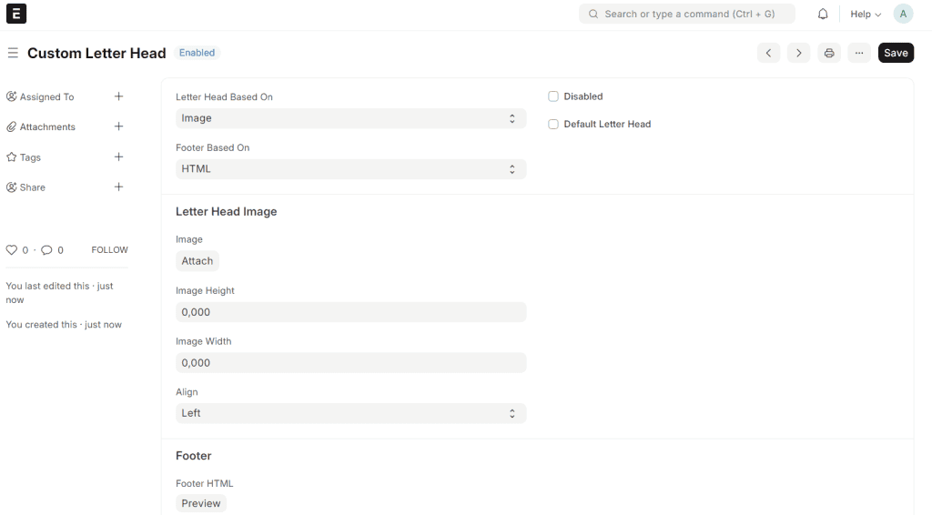 Setelah itu dapat di isi Name nya sesuai yang diinginkan, anda juga dapat memilih untuk Letterheadnya dan footernya dalam gambar atau HTML.