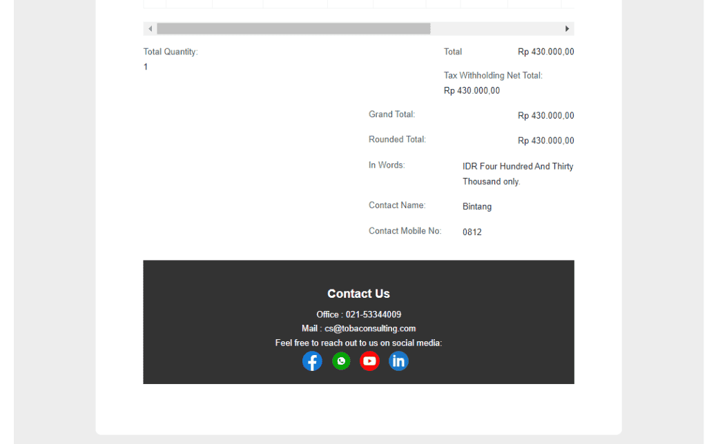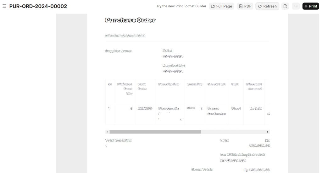 Disini saya memilih font “monospace”, terlihat fontnya sudah berubah dari font default ERPNext pada page Print.