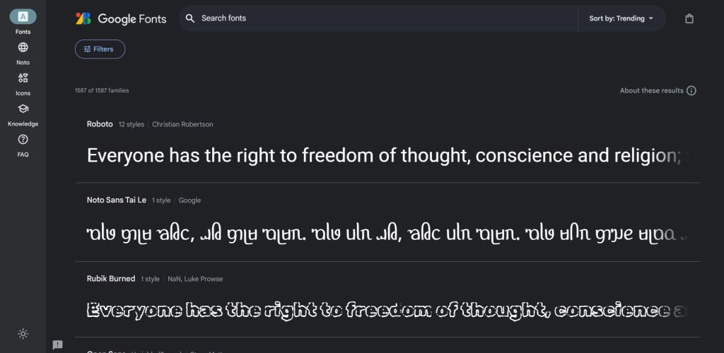 Kemudian dipaling bawah page terdapat pilihan-pilihan font.
