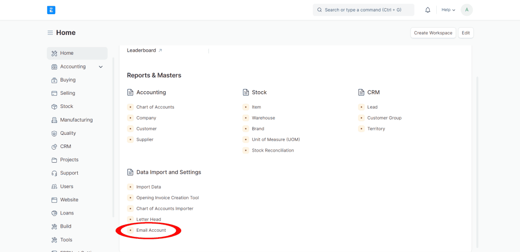 Berikut adalah cara untuk mengkonfigurasi akun email di ERPNext, ikuti langkah-langkah berikut: