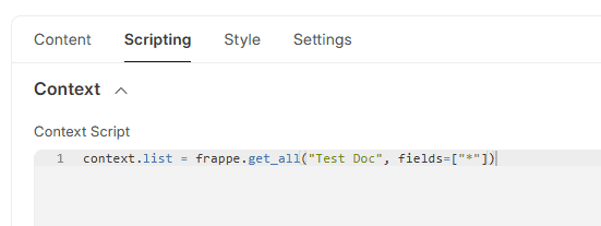 Context ini kemudian dapat kita gunakan pada HTML web page untuk menampilkan data-data dari DocType yang telah kita buat.