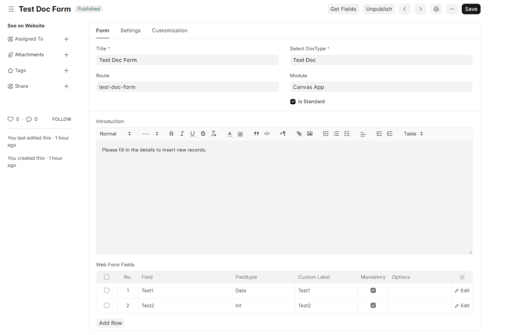 Setelah Web Form di-submit, record baru pada DocType yang Anda pilih akan dibuat secara otomatis oleh Frappe menggunakan data pada Web Form tersebut.